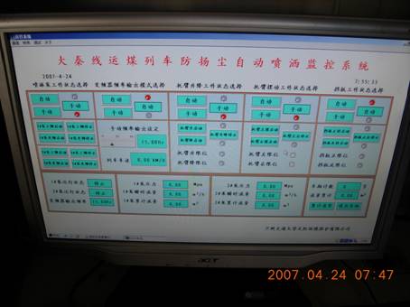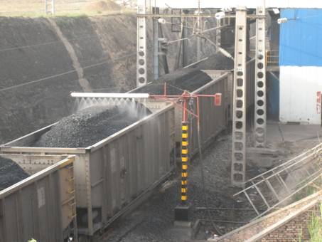 ﹡山西中煤順通煤業有限公司鏟車裝煤點進行的噴灑試驗:設備具有自動識別機車鉤檔功能,根據車速自動調節噴灑量,能夠均勻地將揚塵覆 |