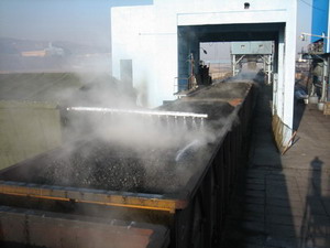 2007年在神華集團(tuán)神東公司榆家梁礦進(jìn)行正式噴灑。該礦年裝車能力可達(dá)一千五百萬噸,其裝車形式為筒倉。設(shè)備采用非電氣化區(qū)間龍門式噴灑系統(tǒng)。其使用效果良好,設(shè)備及制劑穩(wěn)定。對沿線及隧道的污染明顯減輕,年節(jié)約煤損約10萬噸,取得了顯著的經(jīng)濟(jì)效益和社會效益。 |
